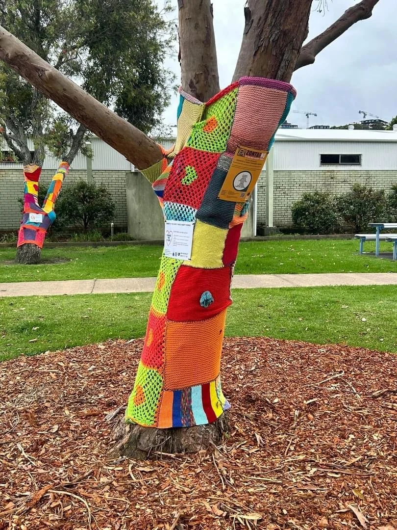 If you’ve noticed trees wrapped in bright, colourful yarn around Kibble Park, Gosford, or down by The Village Green at Toukley, you’ve spotted Zonta Central Coast’s latest yarn bomb — a community advocacy project with a powerful message!